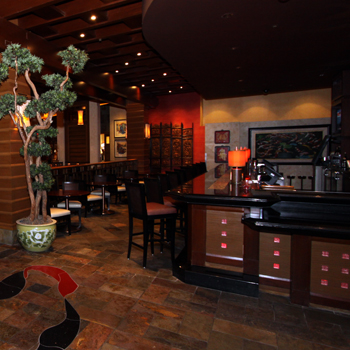 Punctuated by a deep cherry-red wood and granite bar, this is a place to linger. Sit at the high-backed bar chairs and order your favorite sake, or relax at a table while enjoying wine and appetizers.