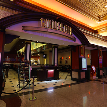 Guests must be 21 years of age or older to dine at Thunder Cafe. Guests age 20 or younger must be accompanied by an adult age 21 or older while dining in the restaurant. Thunder Cafe and the Pastry Counter are open 24/7 for the ultimate all-American diner restaurant experience!